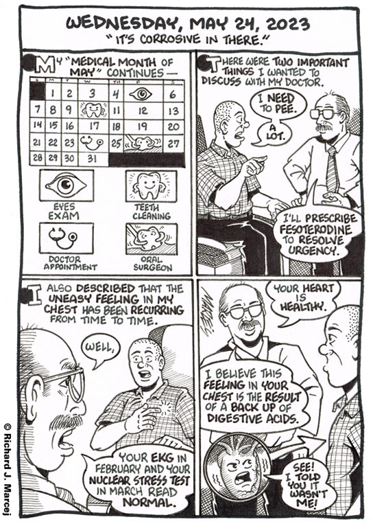 So, my doctor believes the occasional discomfort I have in my chest is due to digestive acids. That makes sense and makes me feel a bit better, knowing that it’s not a problem with my heart. Though it does mean[…]↓ Read the rest of this entry…
