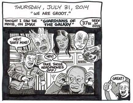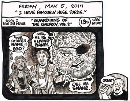 When you’ve been drawing these comics as long as I’ve been, you’re bound to cover a movie and its sequel and its sequel’s sequel. Judging by what I felt about the first two “Guardians of the Galaxy”, I can see that I’ve been consistent with how I’ve felt about all parts of the trilogy.
