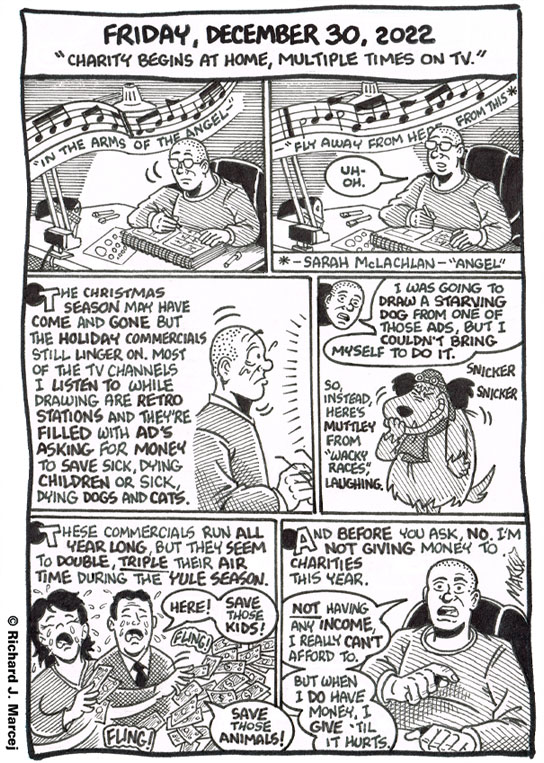 I have a small back yard, but as I’ve shown in past comics, at times it’s inhabited with squirrels, groundhogs, rabbits, chipmunks, mice and a variety of birds. I like to leave food out for the animals, especially when it[…]↓ Read the rest of this entry…