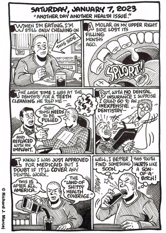 I’ve written comics in the past year about occasionally feeling a discomfort, a pain in the upper right tooth. I’ve known all this time that I’d have to deal with this eventuality, but as quickly as the pain would occur[…]↓ Read the rest of this entry…