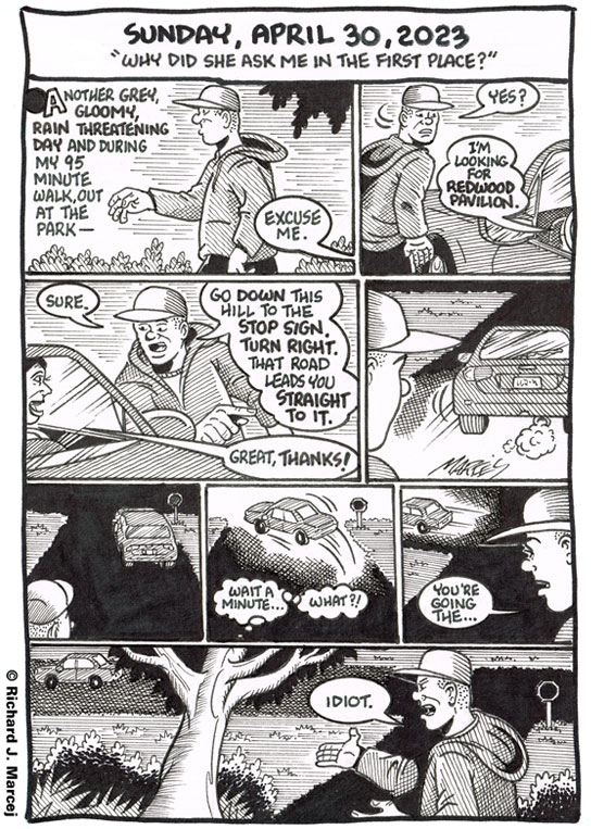 From that point on through the end of my walk I never saw that car again. I have no idea if she ever found her way to that Pavilion. I’m sure I’ve said and shown in these comics before that[…]↓ Read the rest of this entry…