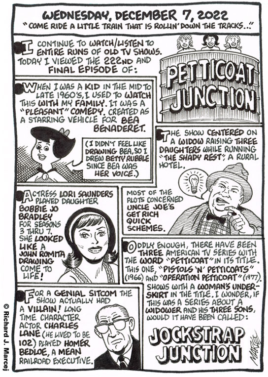 Here’s the cast (from season 3) Top Row (L to R): Frank Cady (Sam Drucker), Gunilla Hutton (Billie Jo Bradley), Linda Henning (Betty Jo Bradley), Rufe Davis (Floyd Smoot), Smiley Burnette (Charley Pratt). Bottom Row (L to R): Lori Saunders[…]↓ Read the rest of this entry…
